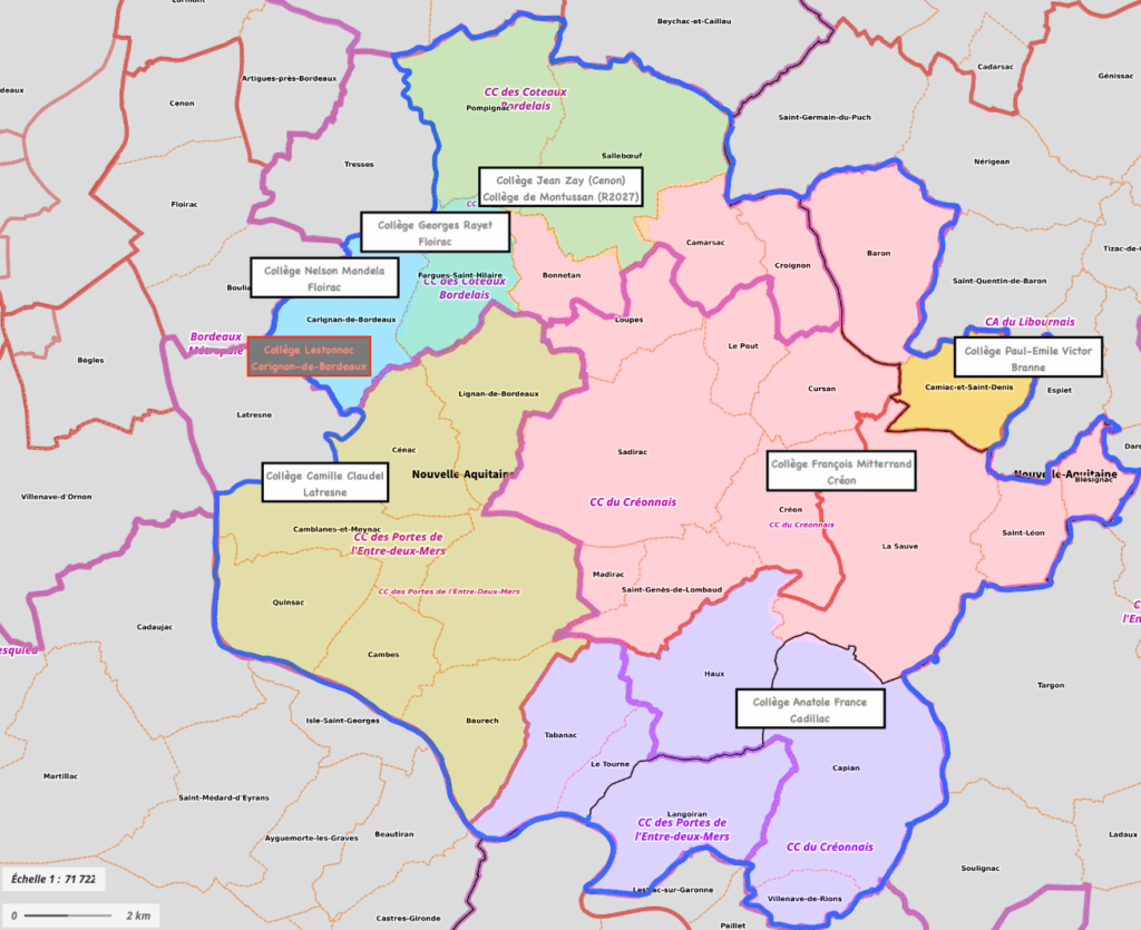 Le bassin réel de recrutement s’étend principalement sur un tiers sud-est du département de la Gironde pour les formations professionnelles.